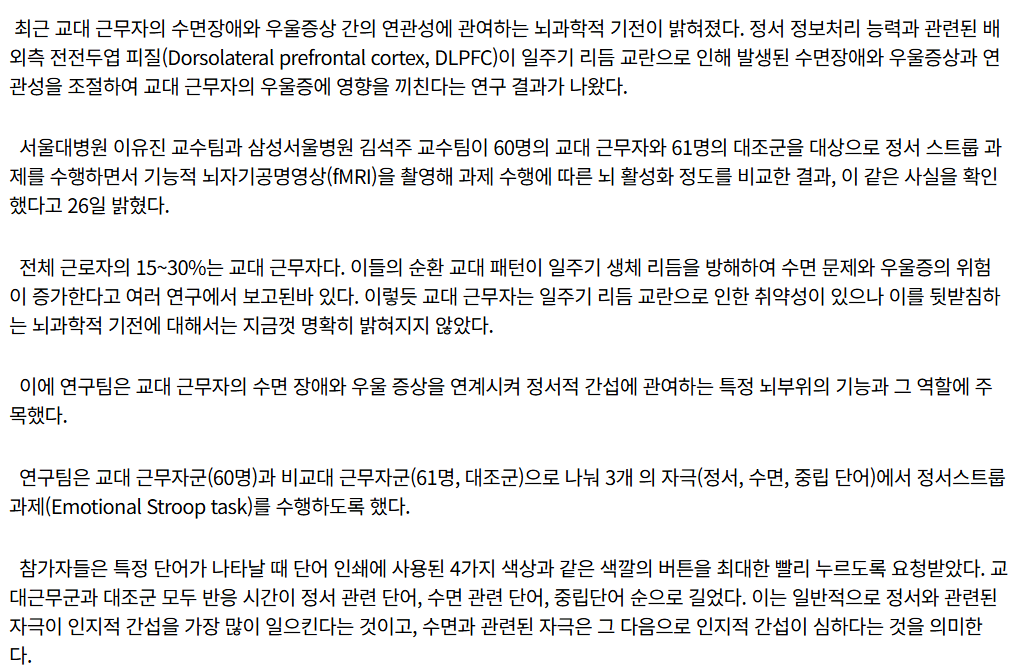 교대 근무자, 수면 장애 및 우울 위험 높아지는 원인은?